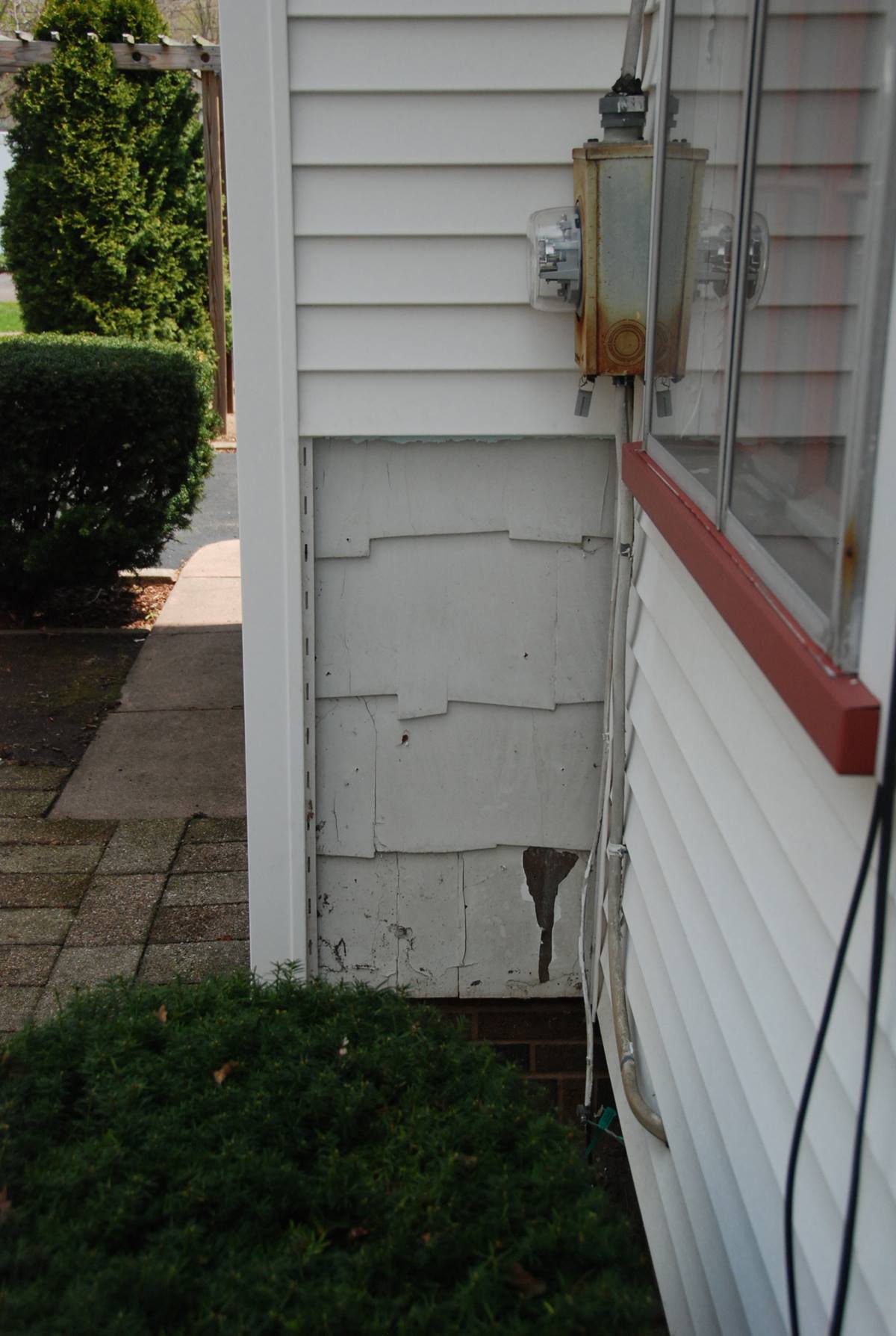 I of course drove right over to the house, ran out front and took this photo…and then, promptly tore off a small section of vinyl siding to reveal the original story-book style cedar siding…score!