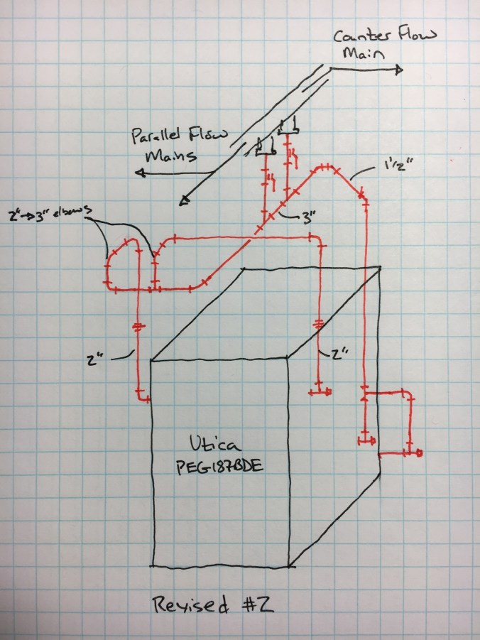 Unfortunately, the radiator vents still gurgle and occasionally hiss because of how absurdly oversized our boiler is and the faulty near boiler piping that causes the steam to be heavy and moist. I drew up several piping diagrams to reconfigure the near boiler piping, and following a lot of valuable feedback I finalized the design and we intend to complete the re-piping work this summer to further enhance our system.